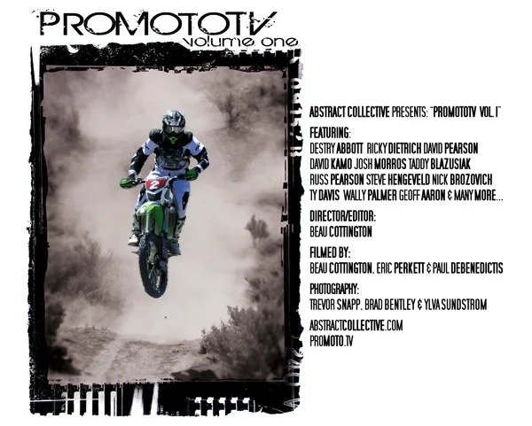 BEAU COTTINGTON presents: “PROMOTOTV VOL. 1” featuring: DESTRY ABBOTT, RICKY DIETRICH, DAVID PEARSON, DAVID KAMO, JOSH MORROS, TADDY BLAZUSIAK, STEVE HENGEVELD, NICK BROZOVICH, TY DAVIS & MORE...